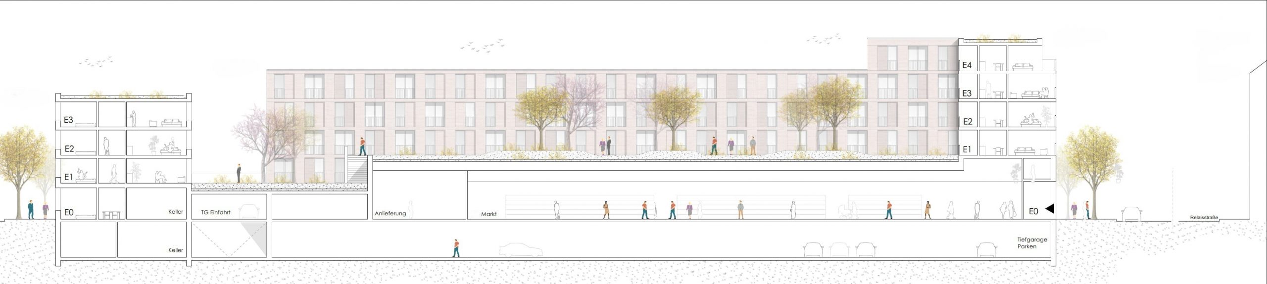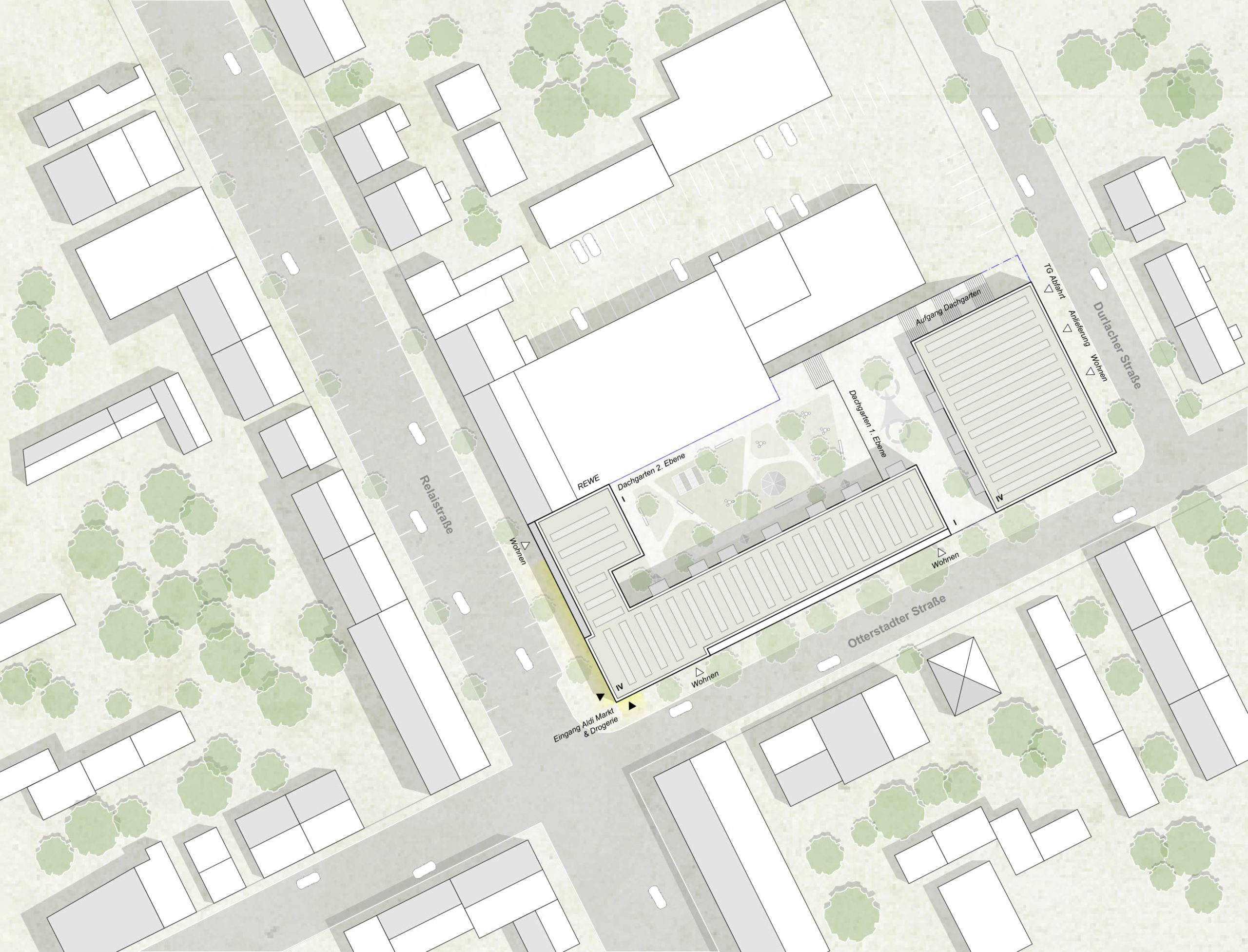 Neubau einer Kombination aus Einzelhandelsstrukturen und Wohnbebauung