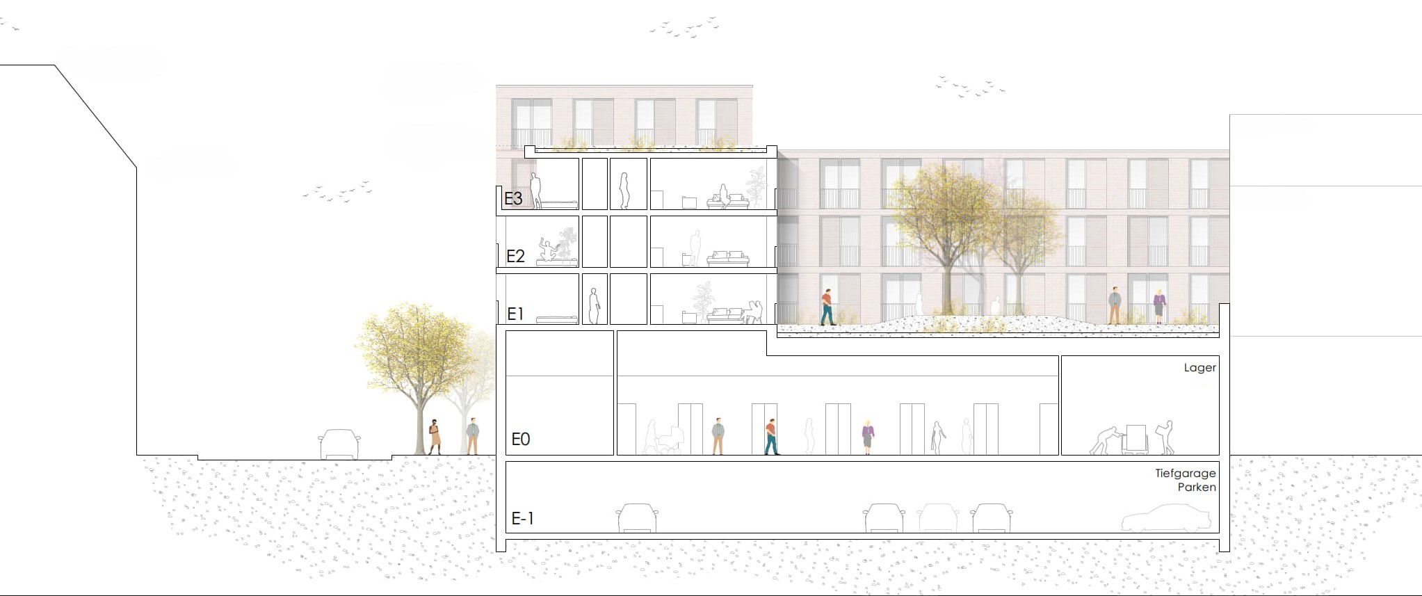 Ergebnis hat. Eine Zäsur führt zum begrünten Innenhof.